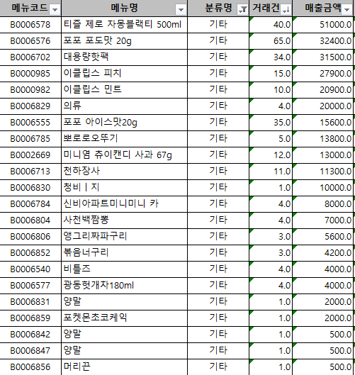 상온 매출 순위 입니다.
